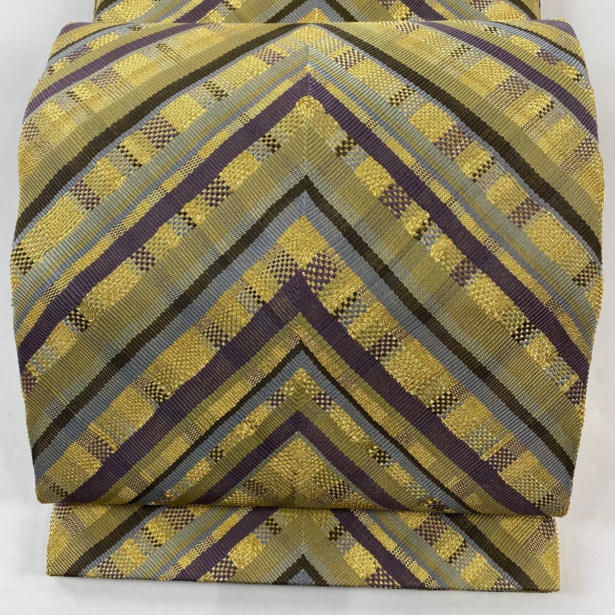 > 【美品】 袋帯 秀品 幾何学模様 金糸 金色 全通 正絹 【中古】