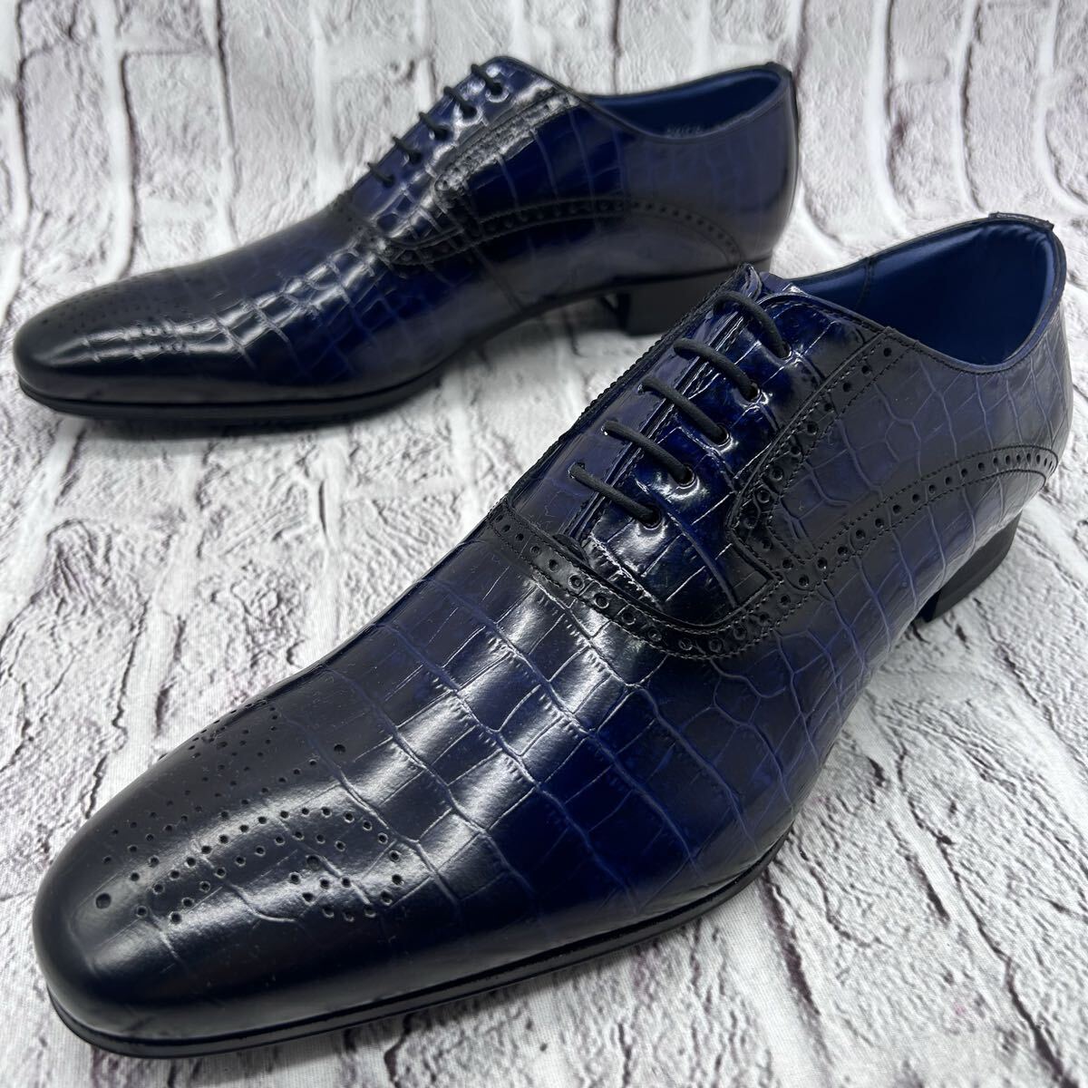 - 【未使用】REGAL リーガル ビジネスシューズ 24GR クロコ型押し 25㎝ ネイビー プレーントゥ メダリオン 雪道対応ソール 革靴 本革 日本製