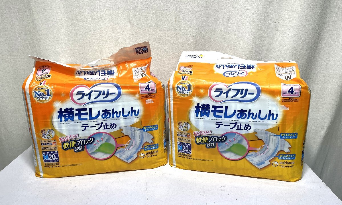 > ▽ライフリー 横モレあんしん テープ止め 男女共用 Mサイズ 20枚 ヒップサイズ:67~106cm ユニ・チャーム 2点セット 未使用▽013244