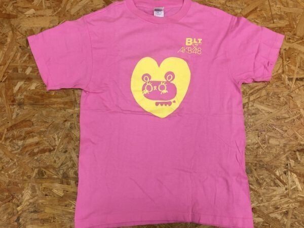 > AKB48 × BLT 板野友美 アイドル 半袖Tシャツ カットソー メンズ コットン100% バックプリント有 M ピンク