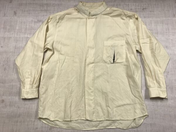 > MARIO VALENTINO マリオヴァレンチノ オールド レトロ モード 古着 ノーカラー ツイル 長袖シャツ メンズ レイヤード LL クリーム色