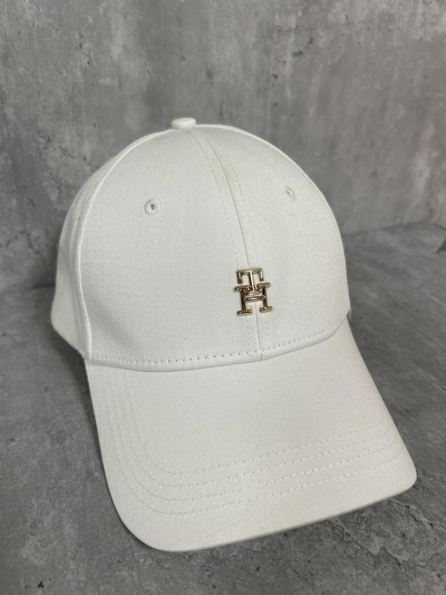> TOMMY HILFIGER トミーヒルフィガー 金ロゴ ベースボール キャップ sizeOS/白 ■■ メンズ