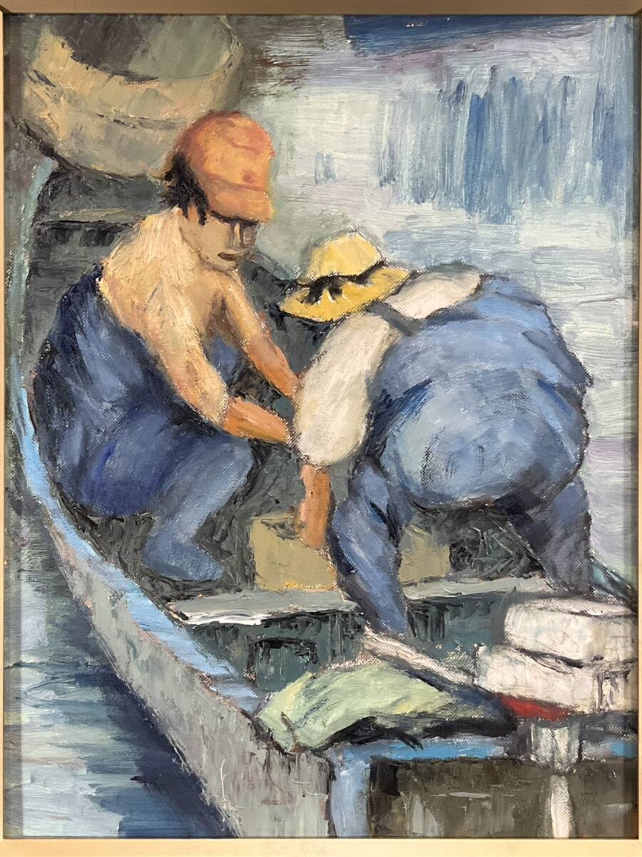 真作■油彩■小沢健次郎■『鯉港』■人物傑作■二四六会所属、創元連入4■額付絵画