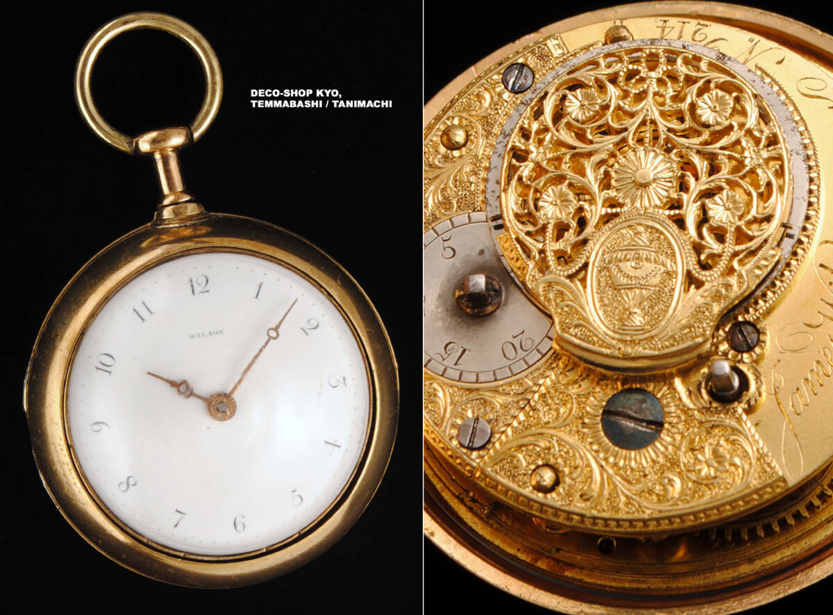 - 超貴重!!英国1770年代!!James Wilson・超希少18世紀美品!!圧巻,細密彫金装飾ムーブ・バージ脱進機&ペアケースウォッチ!!完動品!!