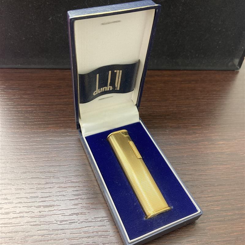 > #134 ライター dunhill ダンヒル ローラー式 ガスライター スリム ゴールドカラー 火花確認 箱付き