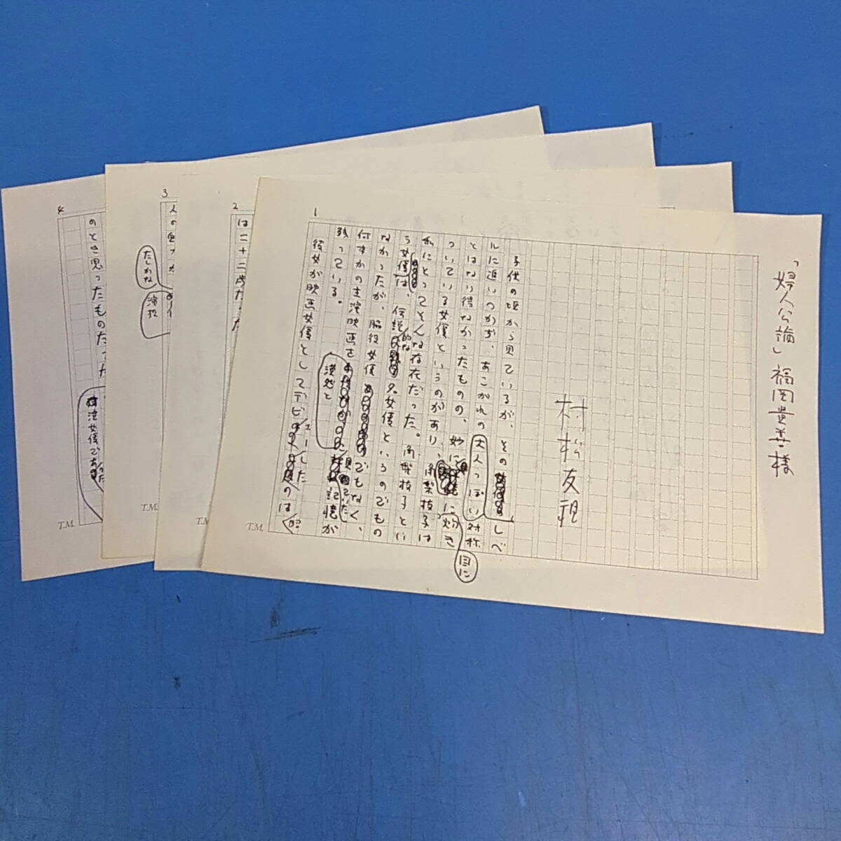 - 村松友視肉筆原稿 角梨枝子のこと... 4枚完 婦人公論《真作》kankando