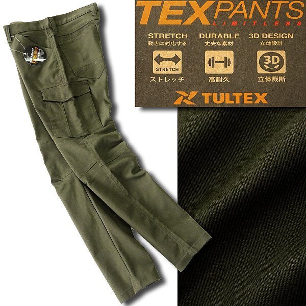 > 新品 タルテックス 耐久性 ストレッチ 3D 立体裁断 カーゴパンツ 82(L) カーキ 【2-2140_25_82】 TULTEX 通年 パンツ ツイル コットン