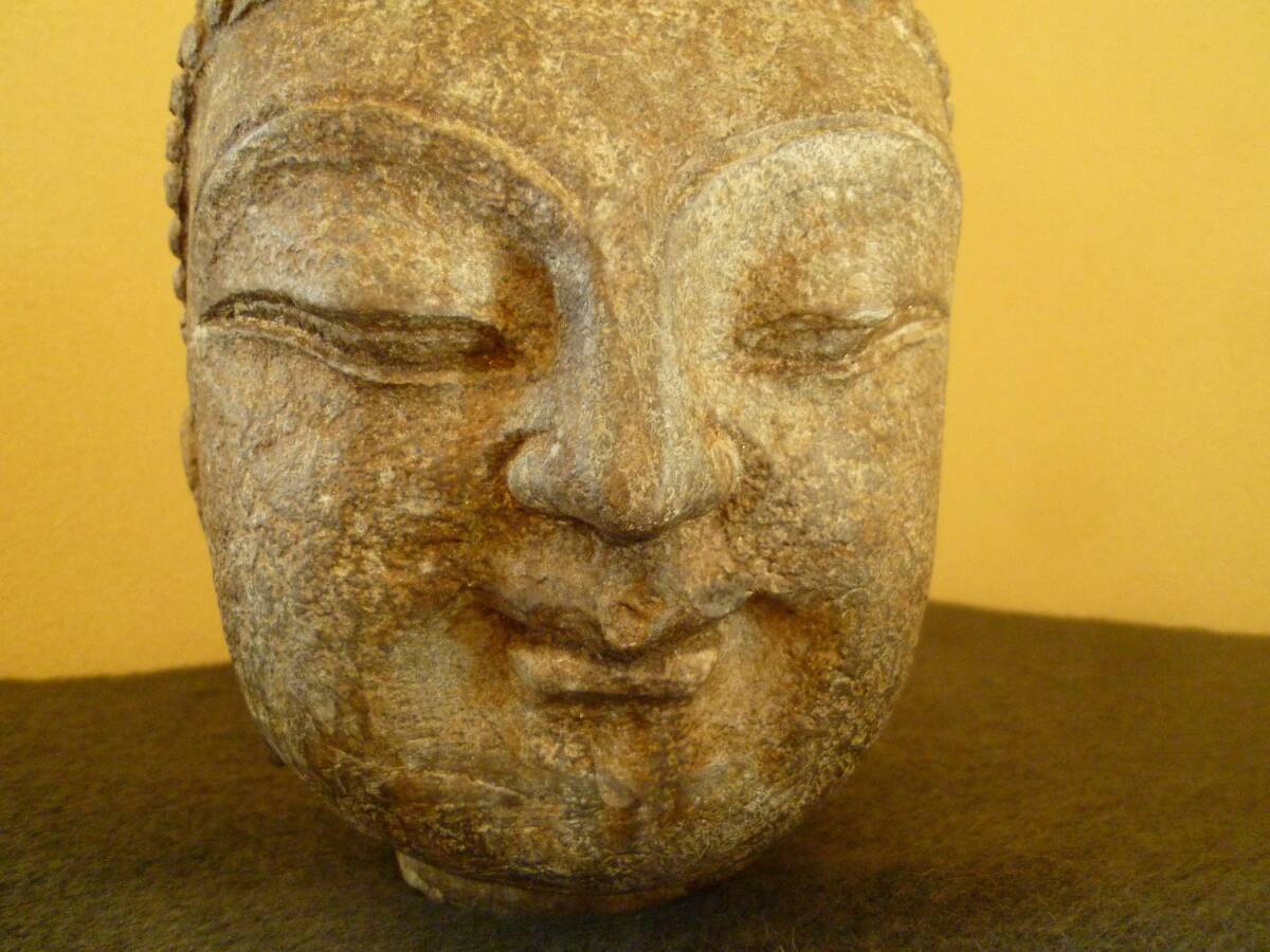 - 【即決・大型】 仏頭(22㎝ 8.5Kg) 石仏 時代物 クメール ガンダーラ 置物 東洋彫刻 唐物 骨董 仏教美術 石像 石造 石塔 五輪塔