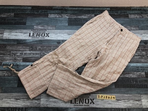 - a.v.v homme アーベーベーオム メンズ チェック柄 裾紐付き 半端丈 パンツ 44 テラコッタ白カーキ