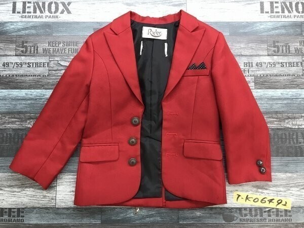 > RIDEO キッズ センターベント 肩パッド フォーマルジャケット 裏地 フェイクポケット 110cm 赤