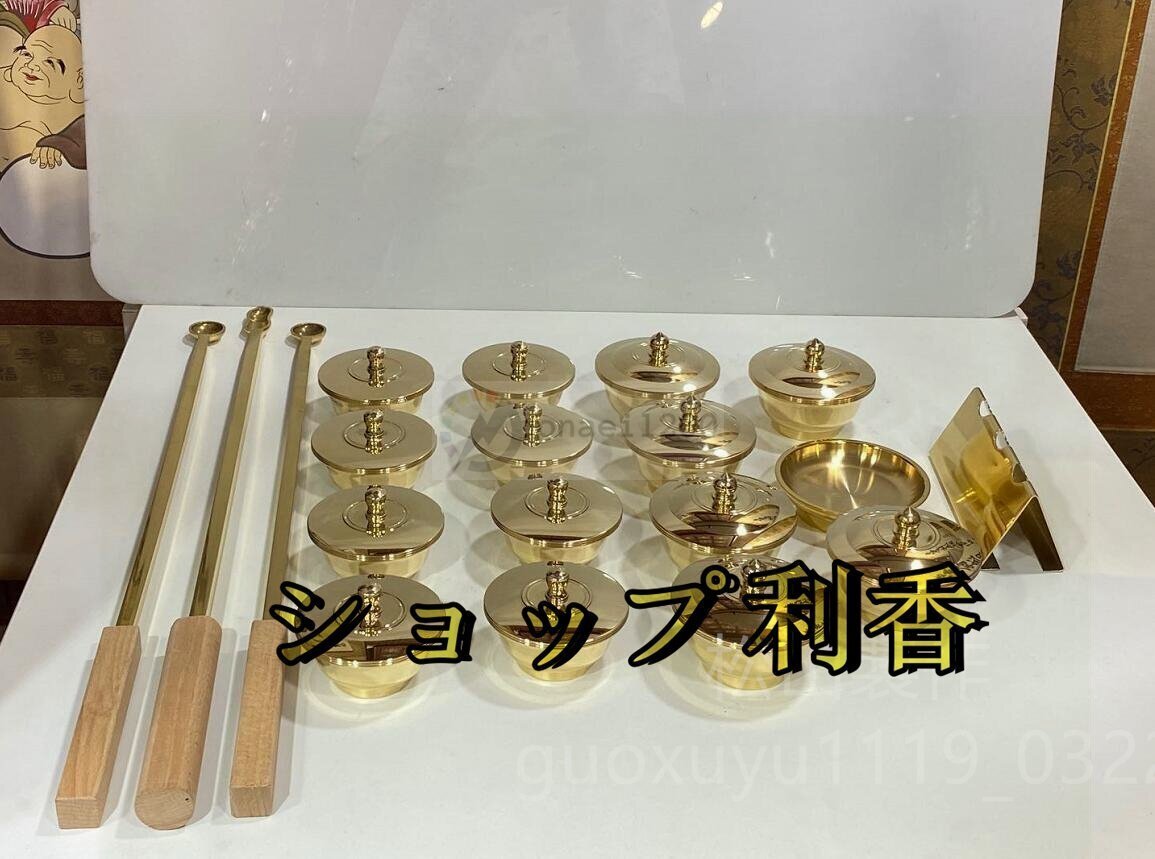 - 「密教法具 寺院用仏具」 護摩器 19点セット 真鍮製磨き仕上げ