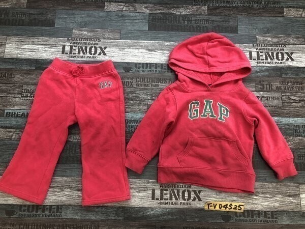 > baby GAP ベビーギャップ 裏起毛 ロゴ プルオーバーパーカー&パンツ 上下セットアップ 90 ピンク