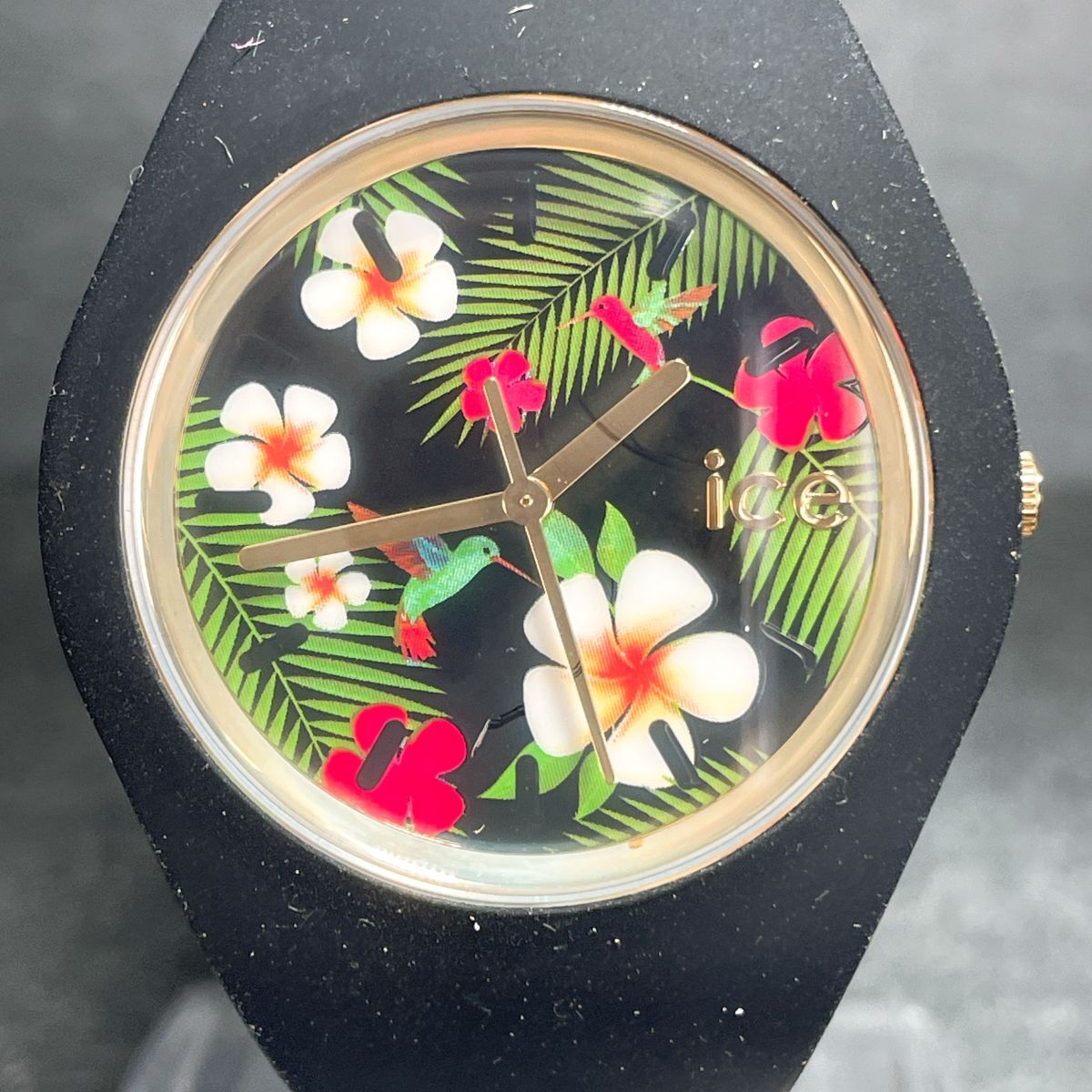 > 美品 ice-watch アイスウォッチ ICE.FL.PAR.U.S.15 腕時計 アナログ クオーツ 3針 ラバーバンド ブラック 新品電池交換済み 動作確認済み