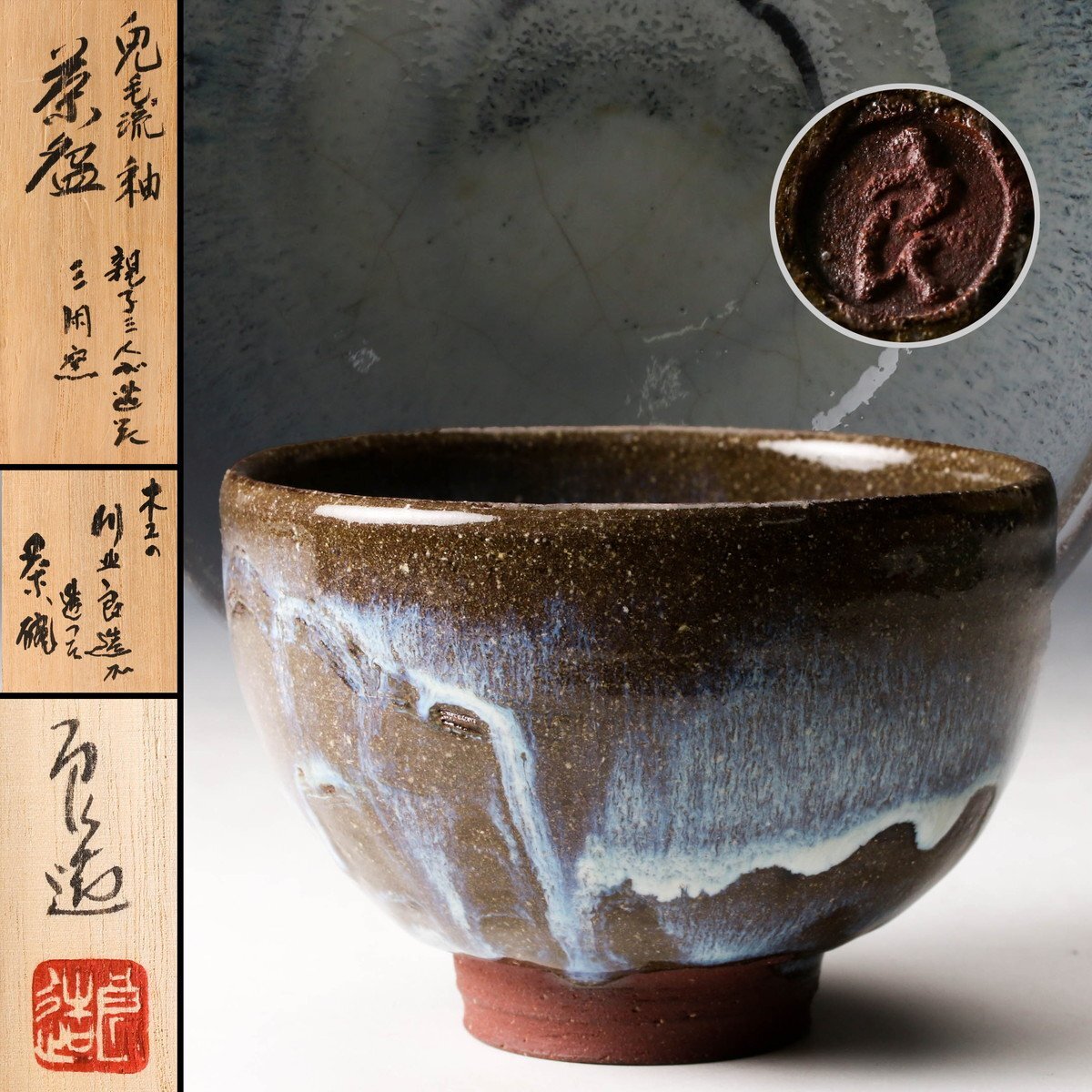 【佳香】人間国宝 川北良造 希少作!三閑窯 兎毛流釉茶碗 共箱 茶道具 本物保証