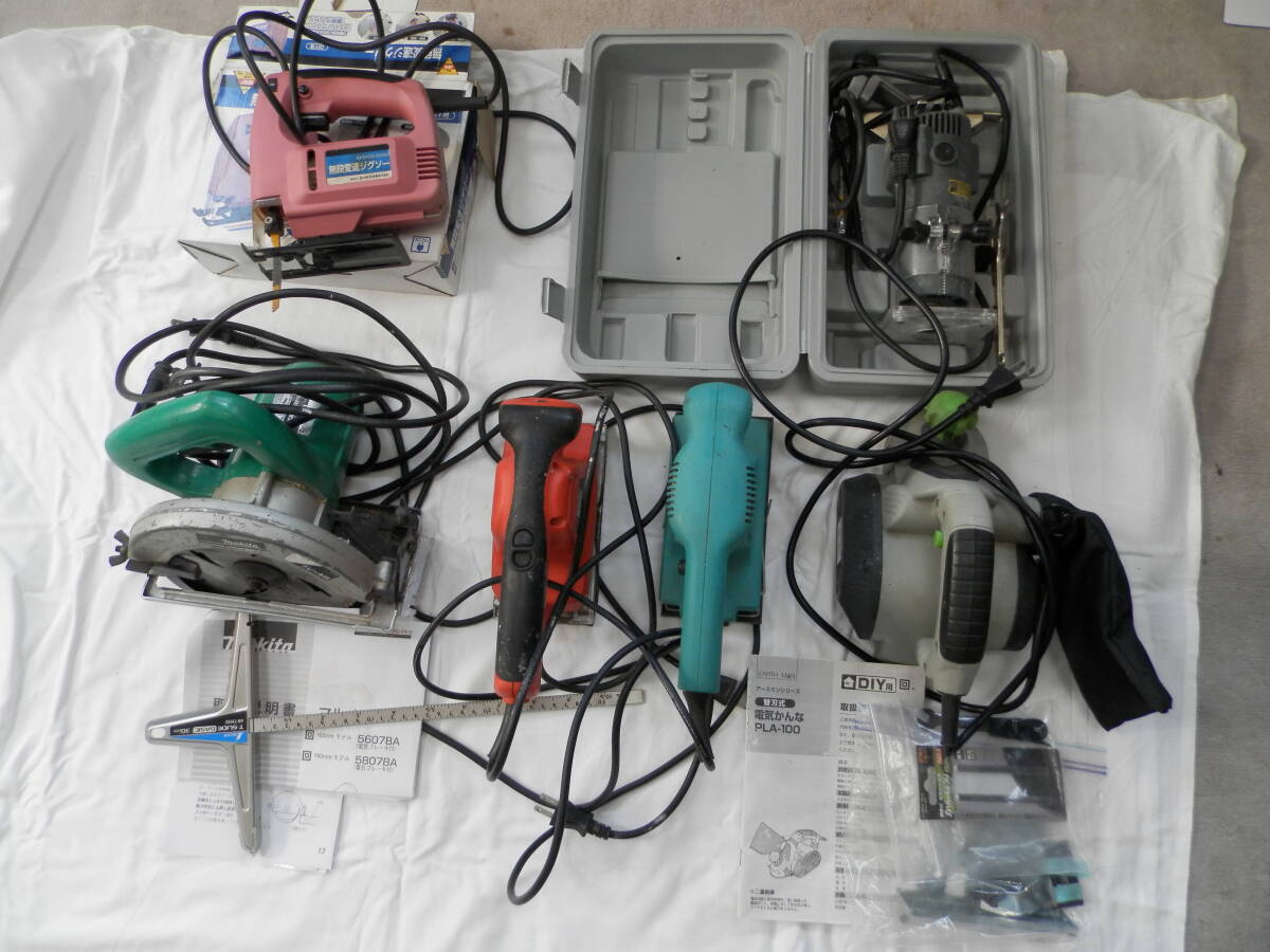 - ★使用可能★DIY 電動工具 電動切削工具 いろいろ まとめて 6台 セット 電気かんな 電動丸ノコ サンダー2ケ トリマー 無段変速ジグゾー