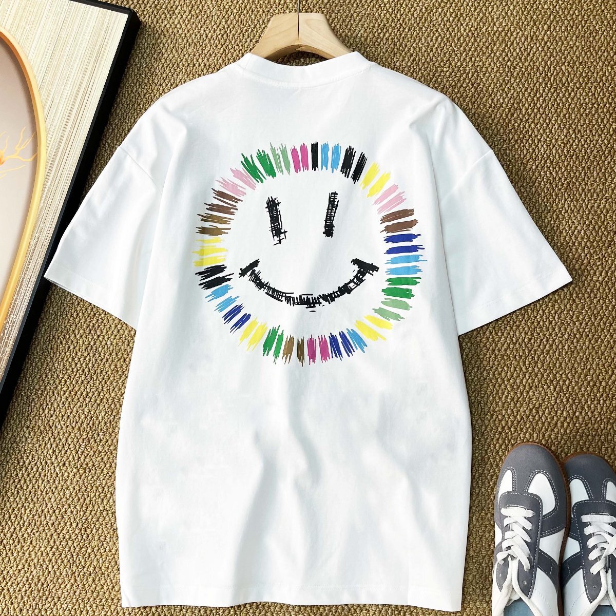 - 半袖 Tシャツ カナダ製造 コットン混 ソフト 笑顔柄 かわいい ゆったり カジュアル トップス プルオーバー スウェット 日常着 夏 SIZE:XL