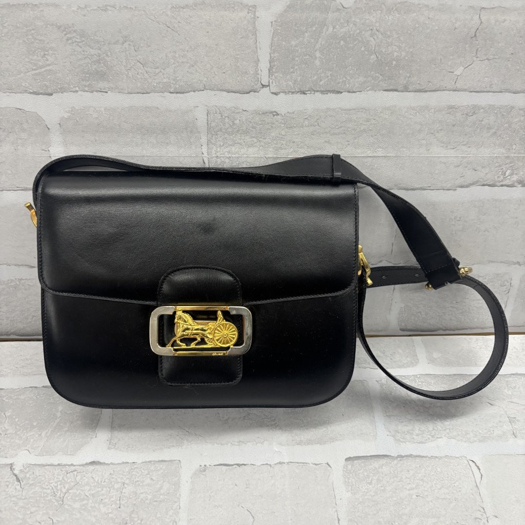 > ◎CELINE セリーヌ 馬車 ショルダーバッグ ブラック 黒 ゴールド金具 レディース TW208587