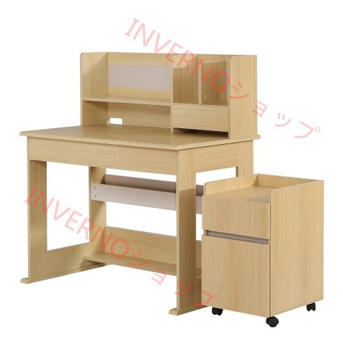 - 学習机 ジュニア学習デスク 勉強机 勉強デスク コンパクト ワゴン リビングデスク パソコンデスク 机 子ども 木製 ブックシェルフ付き 木製