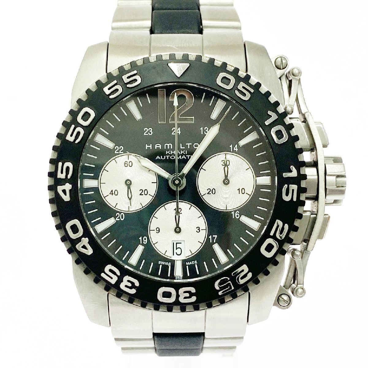 > 【1円スタート】【訳あり品】HAMILTON ハミルトン H635160 カーキ クロノグラフ 裏スケ SS 自動巻き メンズ腕時計 A894185