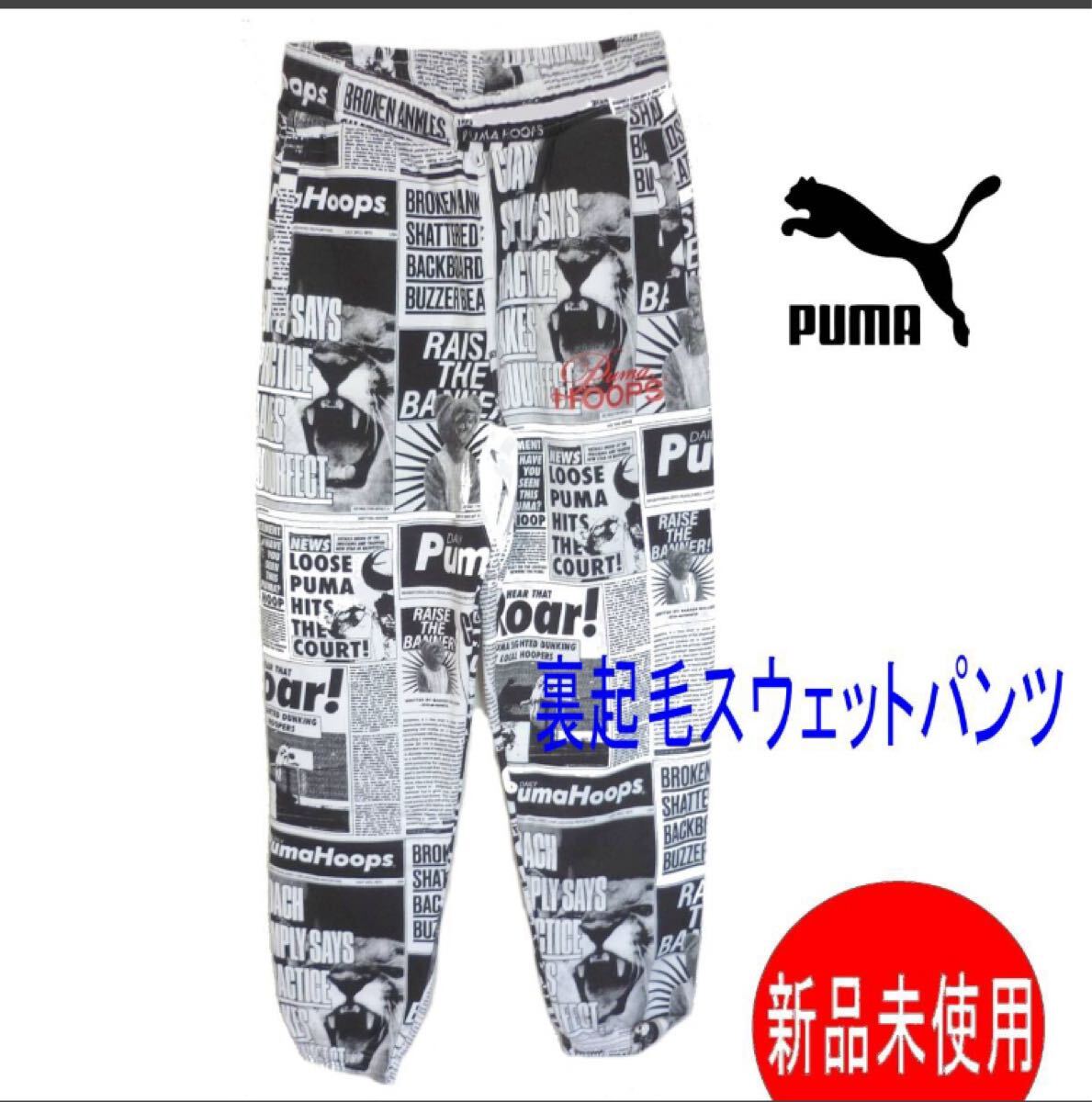 - 新品(メンズL相当)プーマ PUMA 白総柄 HOOPS 裏起毛 ロングパンツ スウェットパンツ グラッフィック