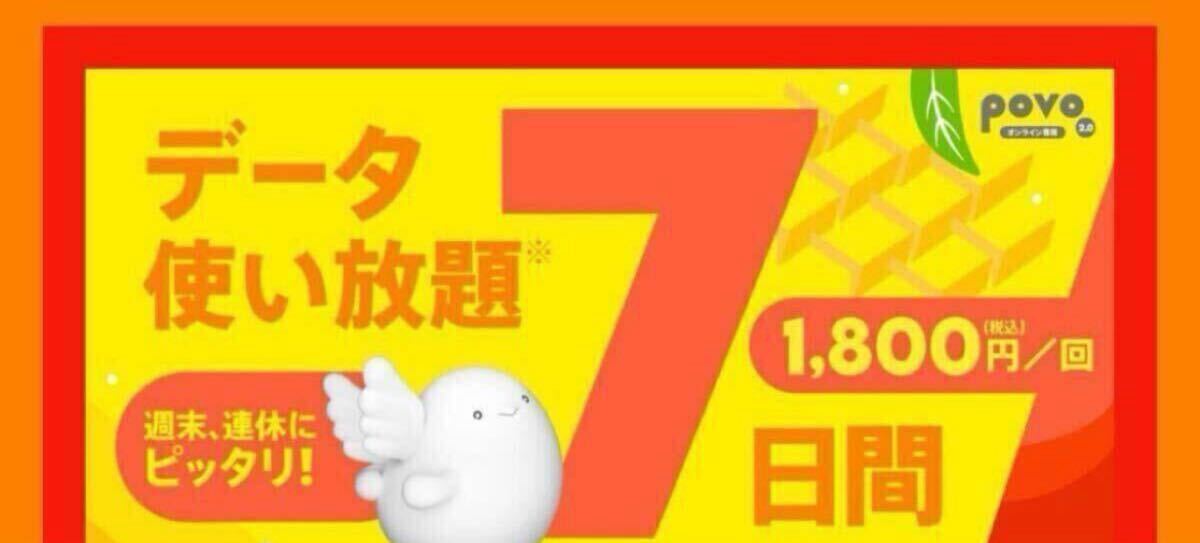 - 【2個】 7日間データ使い放題 povo2.0 プロモコード