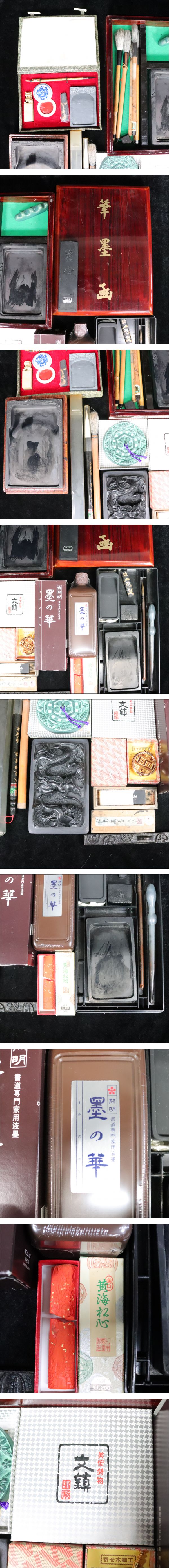> ★書道道具 まとめ 墨 筆 硯 すずり 文鎮 大長峰兼 胡同文 藍製 習字 セット箱付き 龍柄 墨汁 _JFJ_C1021-F016