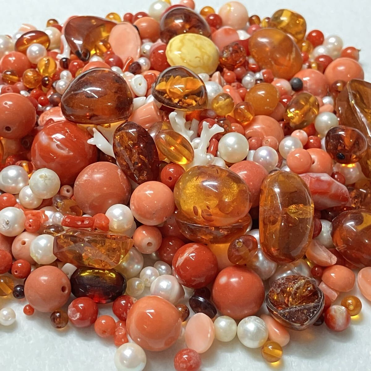 - 大量!!◯天然本珊瑚/琥珀/ロードクロサイト/アコヤ本真珠/本真珠おまとめ1246ct◯n 約249.2g ルース サンゴ 山珊瑚 パール pearl w2ま21