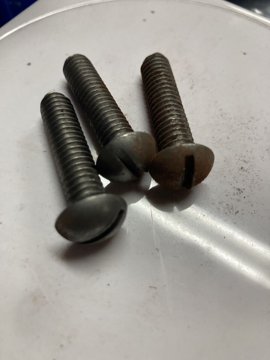 - 5/16-18 ×32ミリ インチ 未使用3本 送料込み 生地 丸頭 マイナス ラウンドヘッドスクリュー 旧車