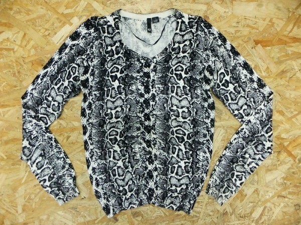 - DIVIDED H&M エイチアンドエム レディース スペアボタン1個 アニマル総柄 綿100% コットンニットカーディガン 42 黒ベージュ