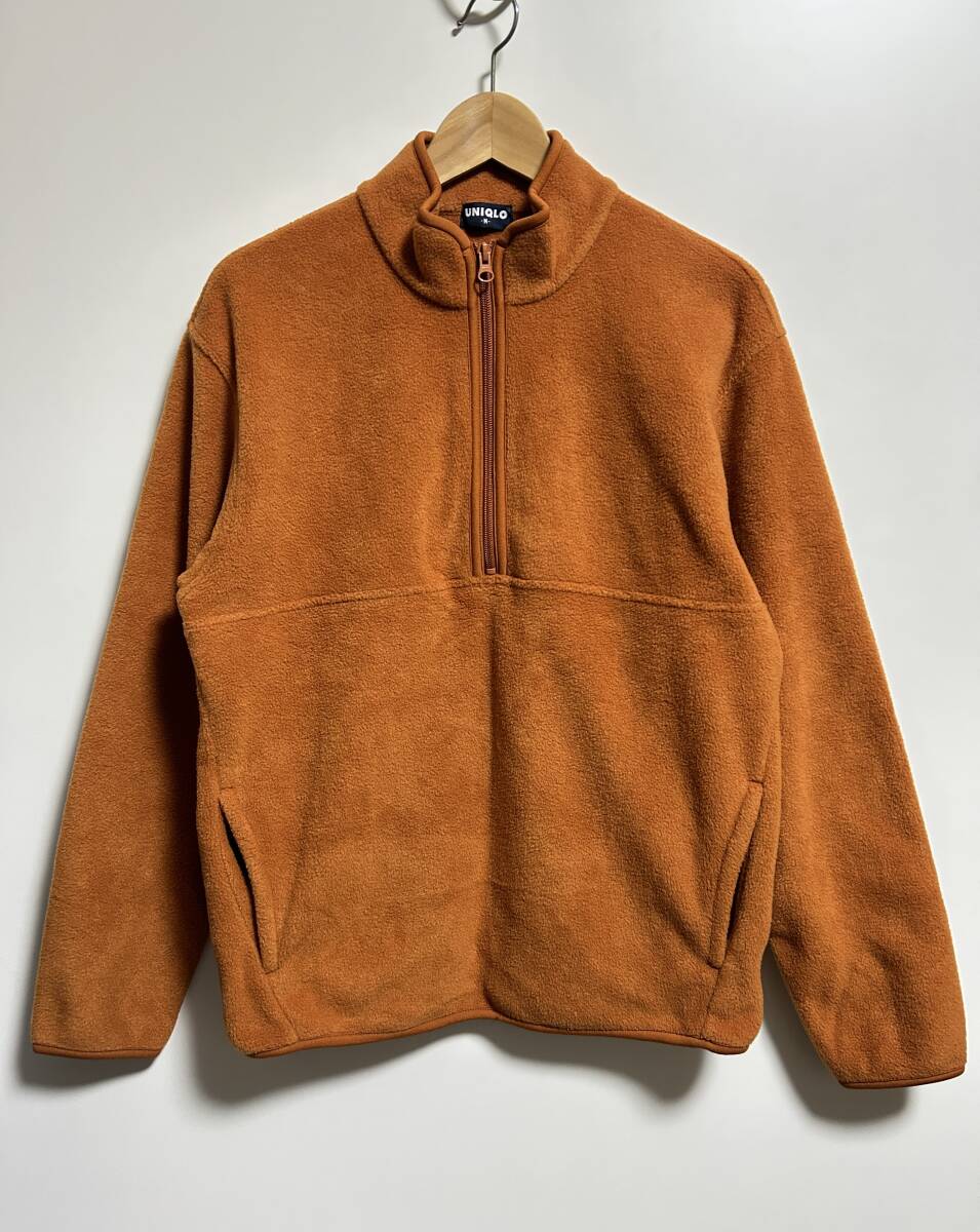 - 美品 オールド UNIQLO メンズ ハーフジップ フリース ジャケット プルオーバー ジャケット M オレンジ 無地 アウトドア 防寒