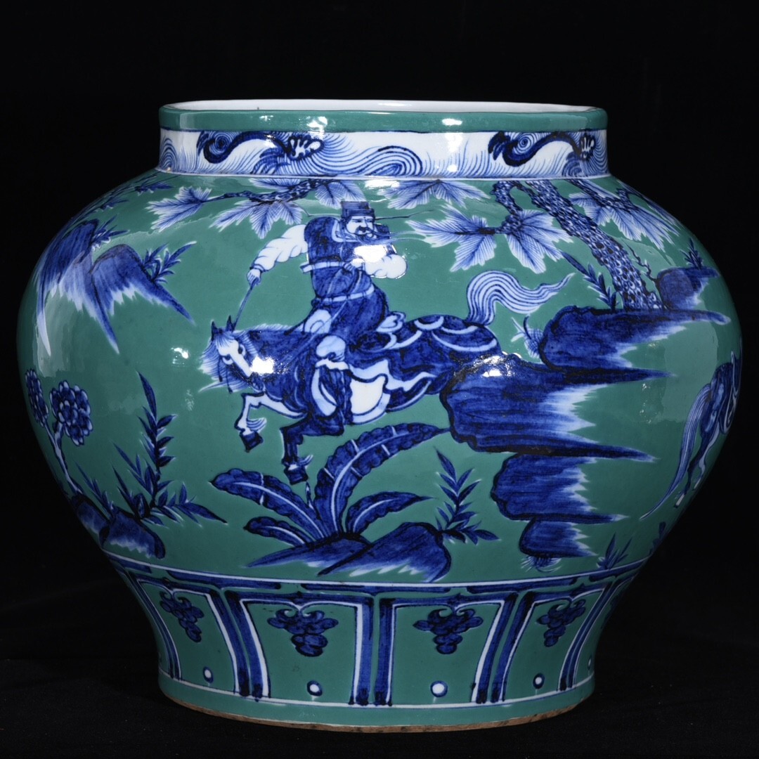 > 【永】元時代 松石釉 蕭何月下追韓信図罐 古陶磁器 陶芸 皿 中国陶瓷器 唐瓷 置物擺件 古美術品 古賞物 収集 旧家蔵出 中国唐物 A3