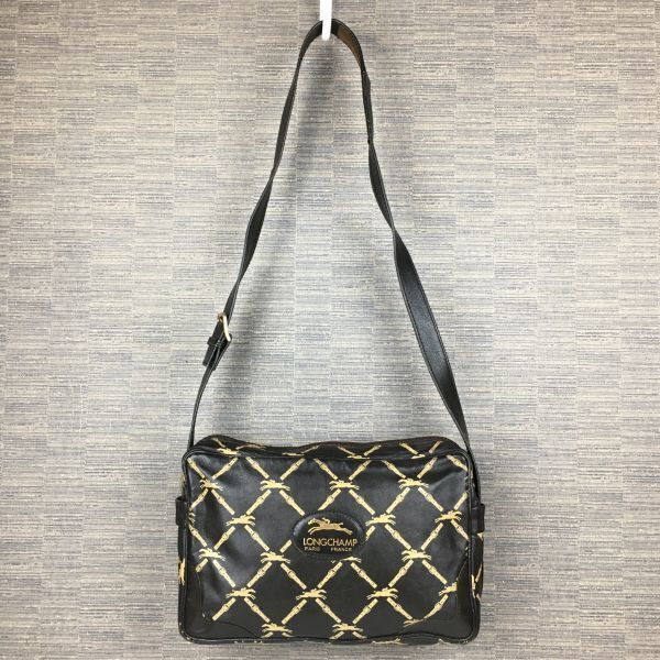 - LONGCHAMP/ロンシャン レザー ショルダーバッグ ダークブラウン/焦げ茶 総柄 管NO.YB20-19