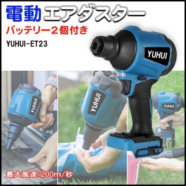 > 【30日間保証付き】電動エアダスター LEDライト搭載 吹き飛ばし・空気入れ・空気抜き OA機器 掃除ノズル付 バッテリー2個付き