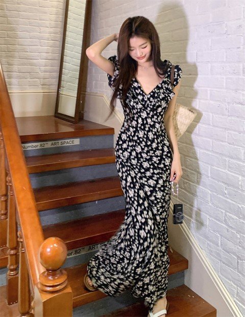 - 500円 同梱不可 カジュアル エレガント ロング 花柄 プリントワンピース M ワンカラー