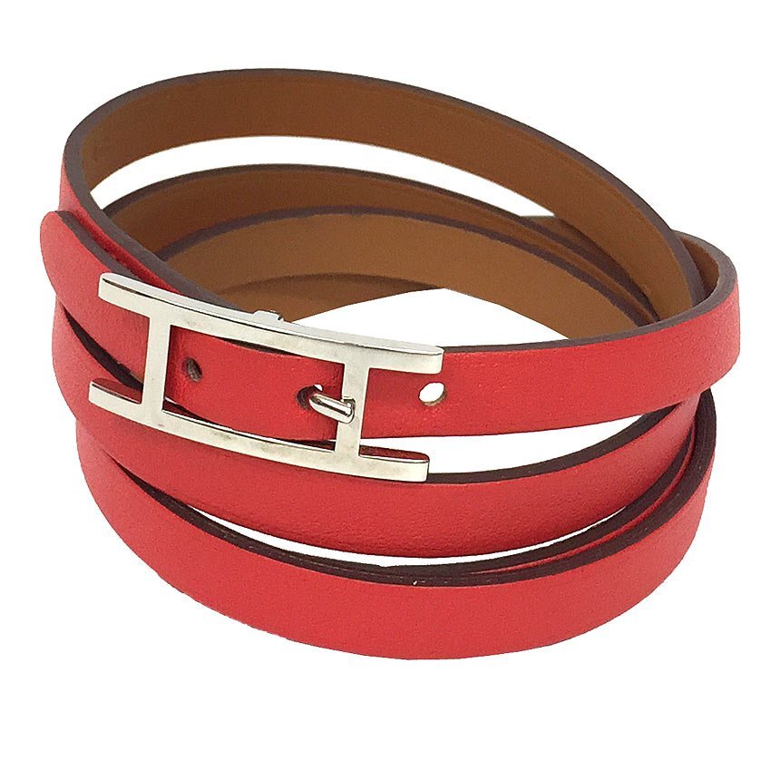 - セール HERMES エルメス アピ3 Api3 ブレスレット Lサイズ ロング チョーカー レザー アクセサリー レッド 赤 美品 送料無料 aq6402