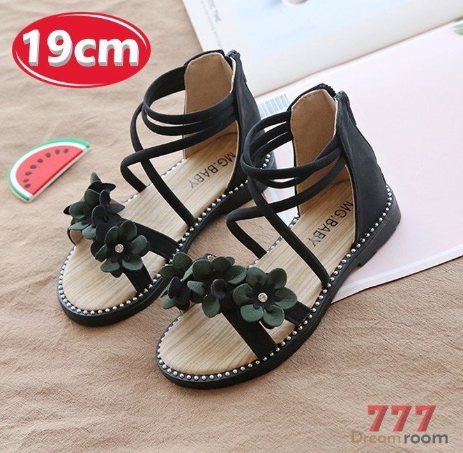 - kids フラワー 編み上げ サンダル 【ブラック 19cm】 韓国子供服 キッズ ビーチサンダル フォーマル 女の子
