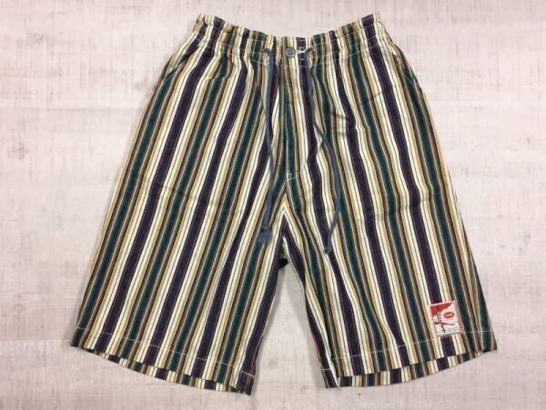 > CHIME オールド レトロ アメカジ 古着 デニム マルチストライプ ハーフ イージー ショートパンツ ボトムス レディース コットン100% M