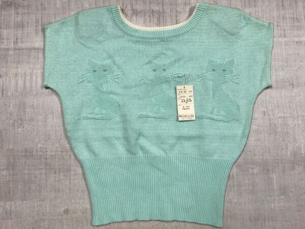> 訳あり新品 Cecilene レトロ ネコちゃん CAT ジャガード パール刺繍 ドルマンスリーブ 半袖ニットセーター トップス レディース 日本製 M