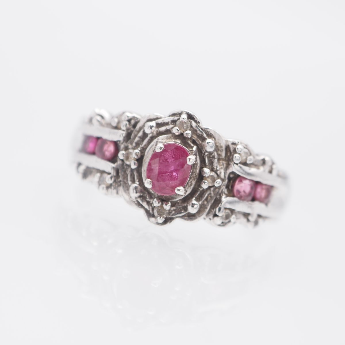 - G661 ルビー? ピンクスピネル? 925刻印 リング デザイン シルバー 指輪 17-18号
