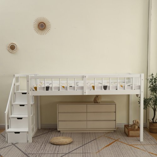 - 【ホワイト】ロフトベッド 木製 ベッド ロフト システムベッド 子供ベッド シングル ロフトベッドロータイプ ウッド2.8