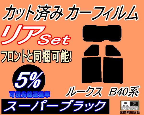 - カーフィルム スーパーブラック カット済み リアセット ルークス B40系 (b) スモーク ガラスフィルム セット B44A B45A B47A B48A トヨタ
