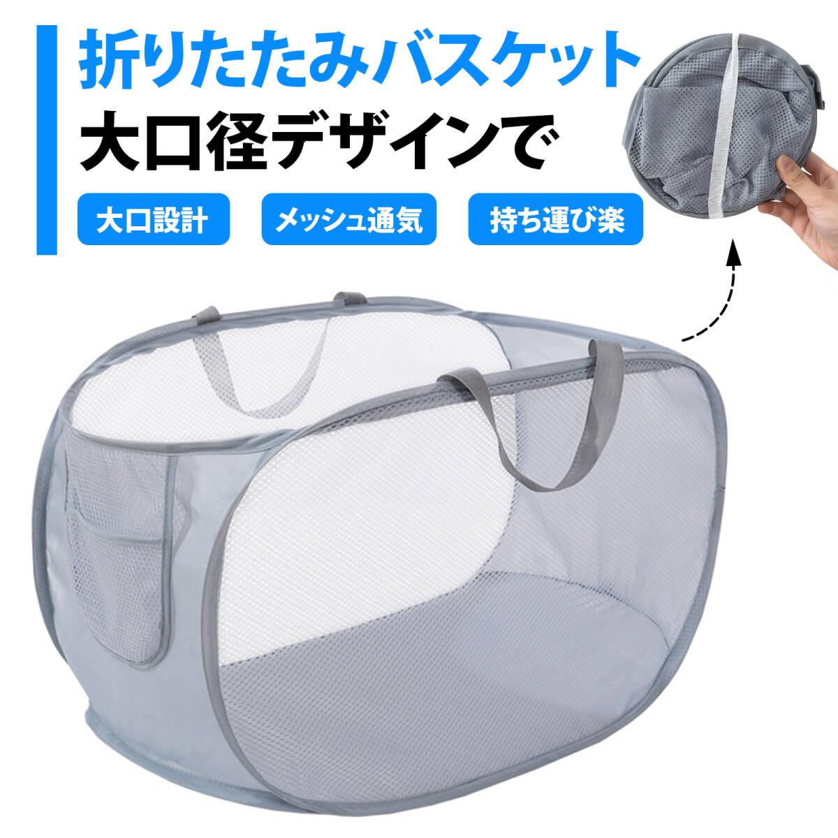 - 洗濯かご 折りたたみ洗濯かご せんたくかご 洗濯かご 大容量 通気性バスケット持ち手付きランドリーバッグ 収納バスケット ;J7808;