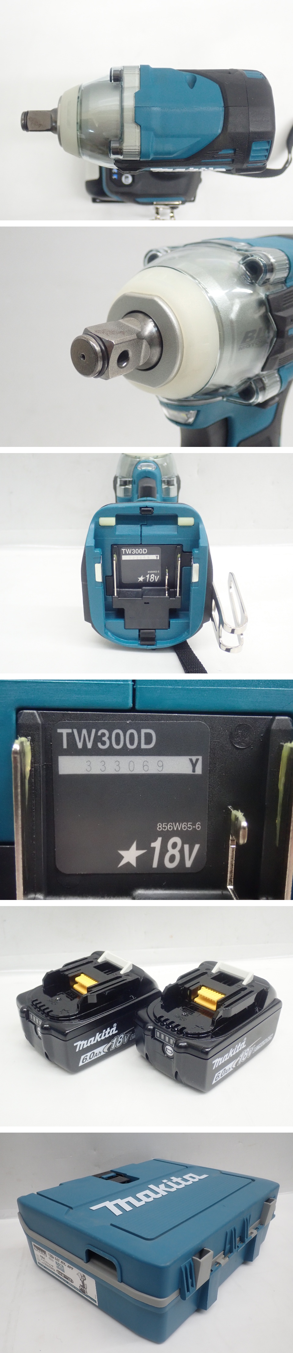 > 【美品】 makita マキタ 18V 充電式インパクトレンチ TW300DRGX バッテリー2個/ケース付き ∩ 73A01-1