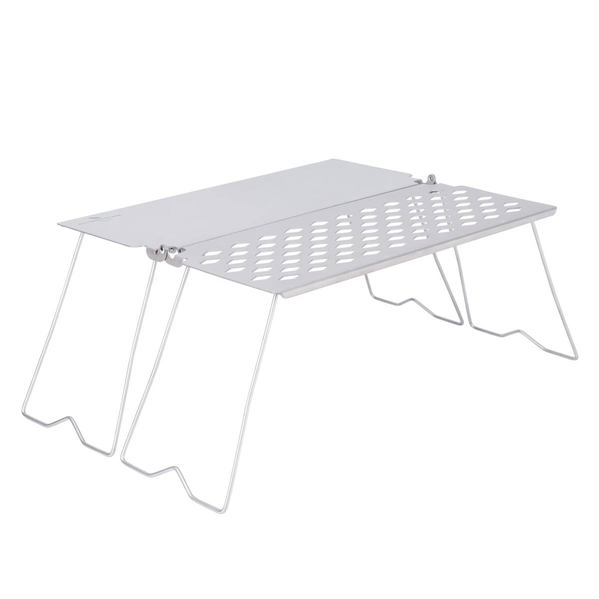 展開面積はA4紙よりやや大きく、半分に折りたたむともっとコンパクトになり、厚さ1mmのチタン製で軽量化を実現。 重量と収納サイズを重視したキャンパーにお勧めです。