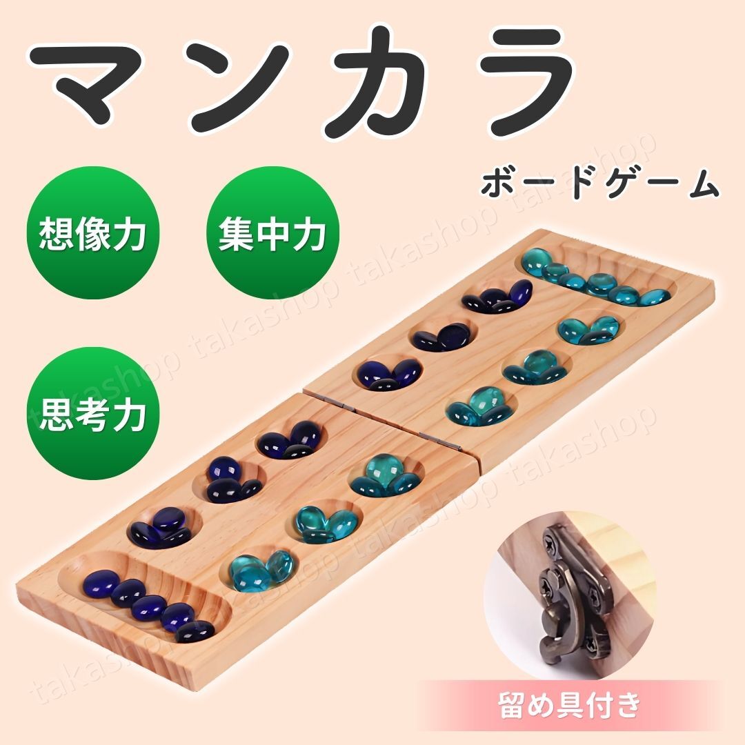 - マンカラ ボードゲーム カラハ ファミリー 知育玩具 折りたたみ 木製 持運び 留具付 伝統的 脳トレ 頭脳ゲーム 世界最古 おはじき シンプル