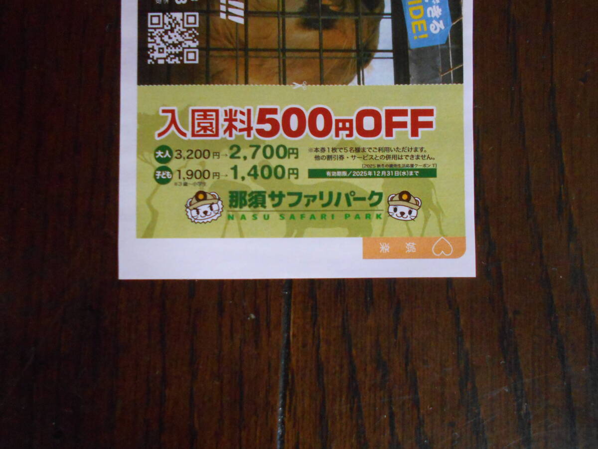- 那須サファリパーク 入園料割引券 12/31まで 送料無料