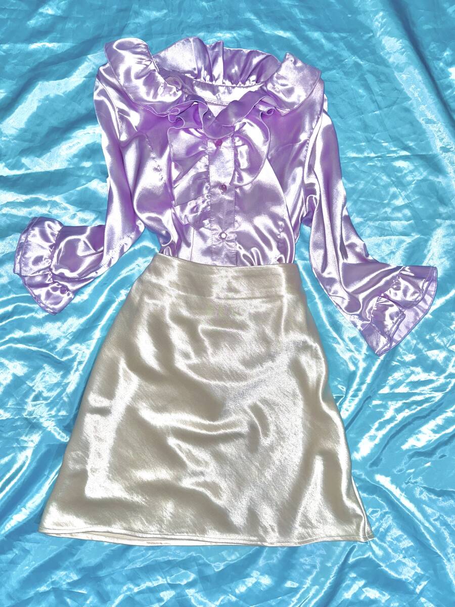 - フリル サテンブラウスとスカートのセットコーデになります。・*・:♪フェチさま。・*・:♪