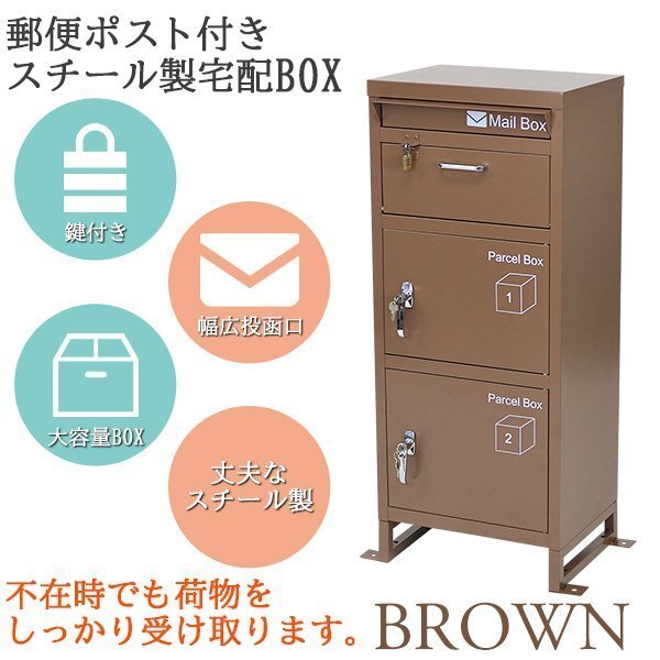 - 送料無料 スチール製 宅配ボックス 宅配BOX 3段 ブラウン スチールロッカー ポスト 郵便ポスト 郵便受け 置き型 戸建て 一戸建て用 再配達