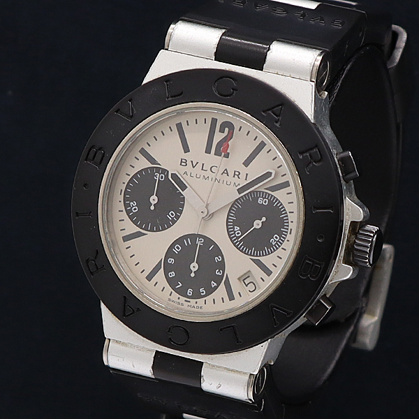 > 1円 稼働 ブルガリ アルミニウム AL AC38TA AT シルバー文字盤 メンズ腕時計 3771900 10KHT KMR