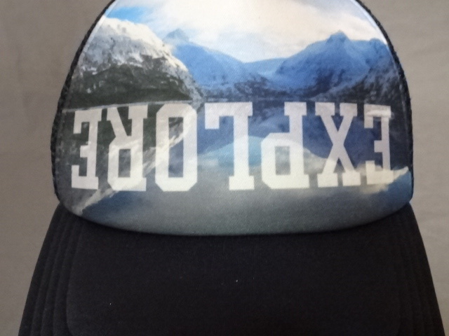 > 激レア USA購入 人気アウトドアブランド ノースフェイス【THE NORTH FACE】 【EXPLORE】雪山 ロゴプリント入り メッシュキャップ 中古良品